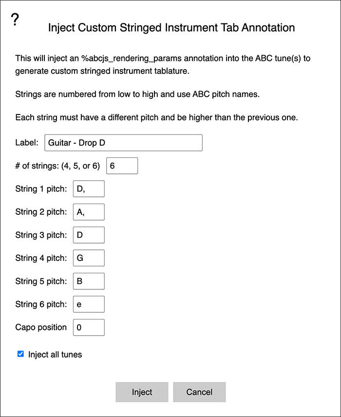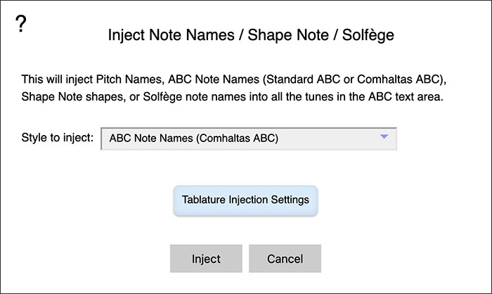 Instrument Tablature, Note Name, Shape Note, and Solfège Injectors
