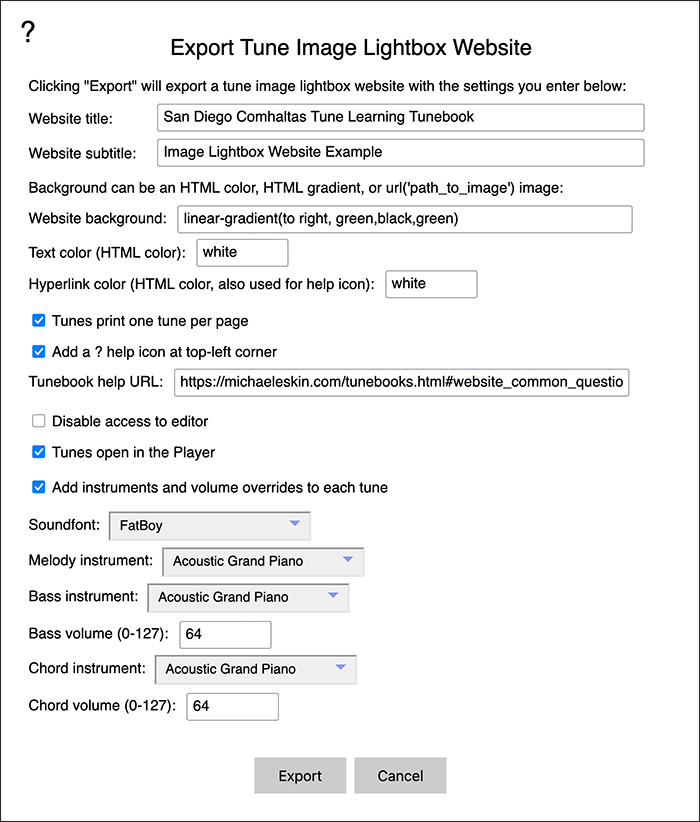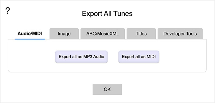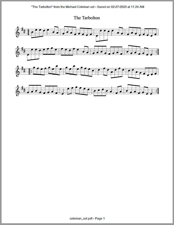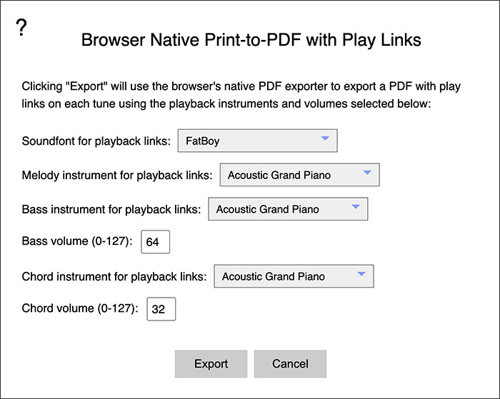 - Click the PDF icon button at the bottom-left of the window to export a PDF of the tunebook.