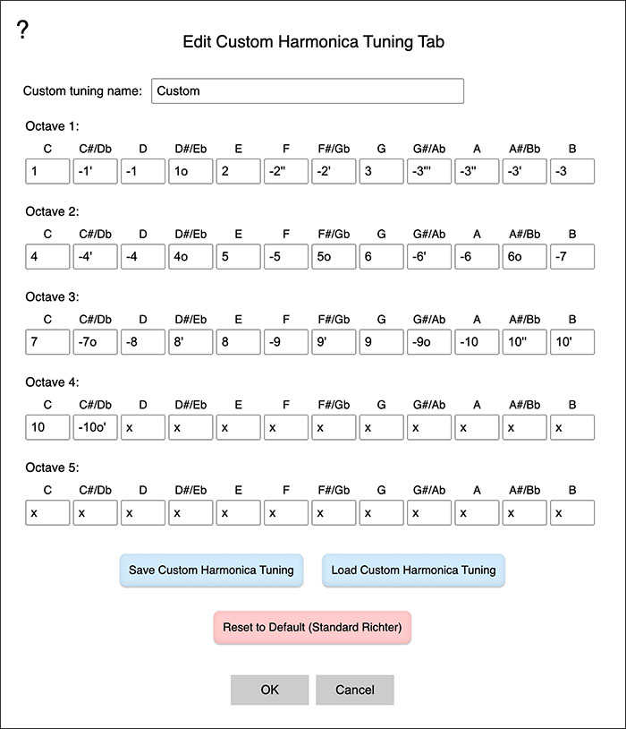 Edit Custom Harmonica Tuning Tab