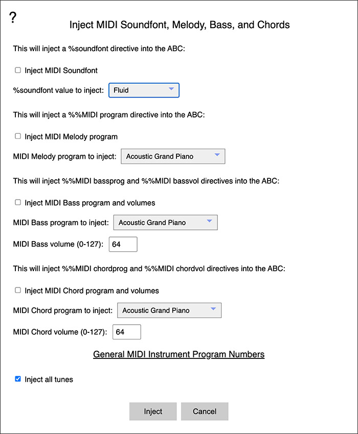 Choosing the MIDI Soundfont and Instruments for the Melody, Bass, and Chords