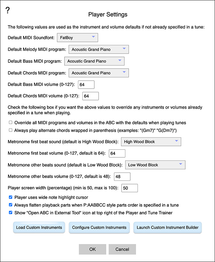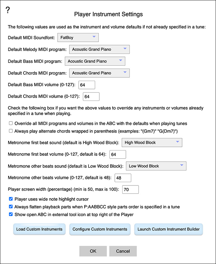 Select Default Player Instruments and Volumes