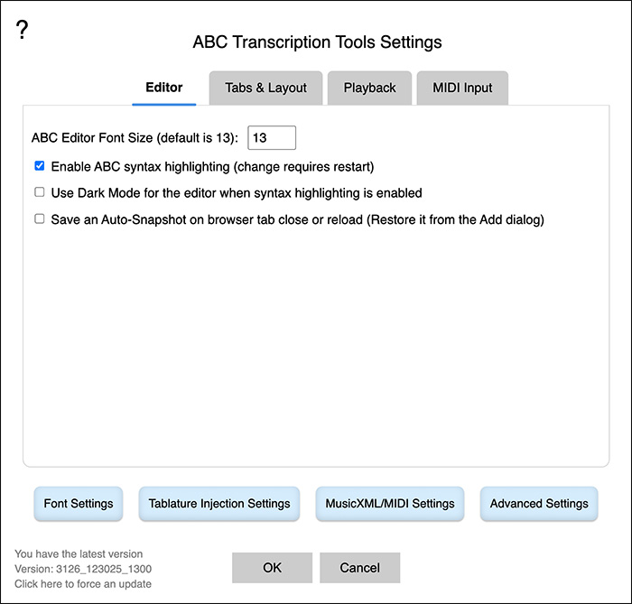 ABC Transcription Tools Settings