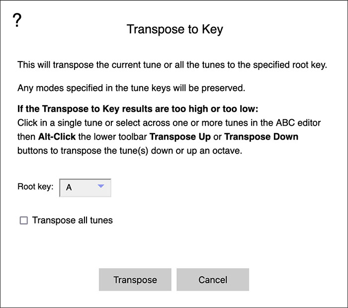 - Edit and organize with power. Transpose single tunes or entire tunebooks to any key. Sort by name, key, meter, rhythm, and other ABC headers. Perform fast text search and replace—including full regular expression support.