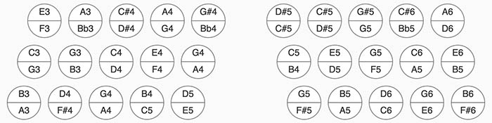 If you are playing a 23-button instrument, you will need to shift your start position one button higher when playing.