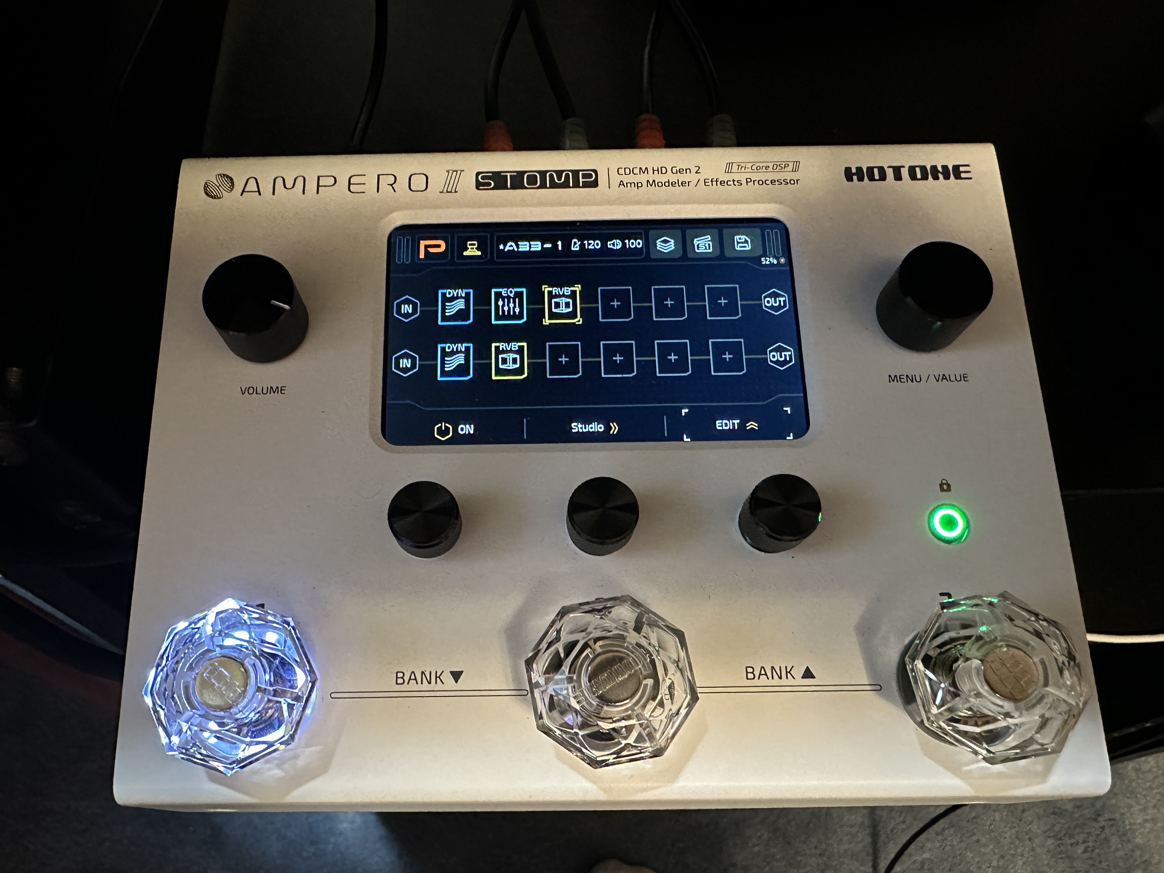 On 13 April 2025, I replaced the entire iPad-based system with a dedicated Hotone Ampero II Stomp multi-effects processor.